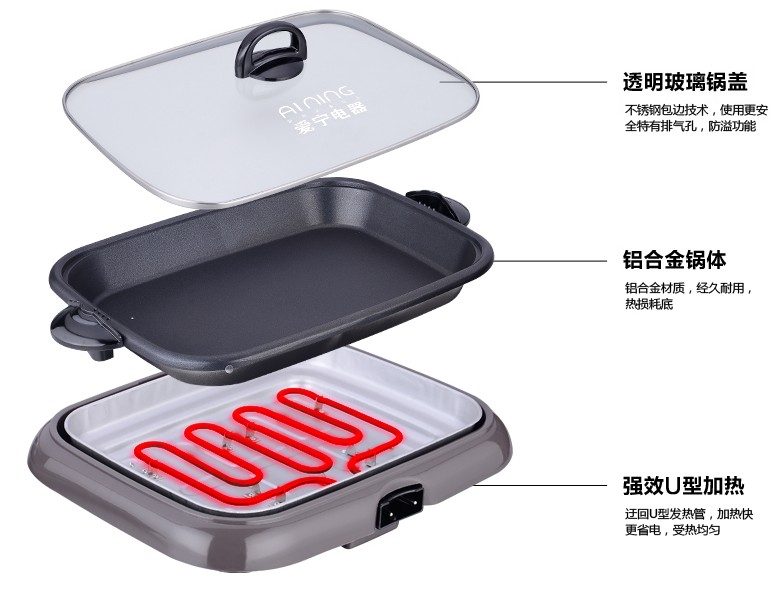 愛(ài)寧301烤魚爐分體不粘電烤盤烤魚鍋